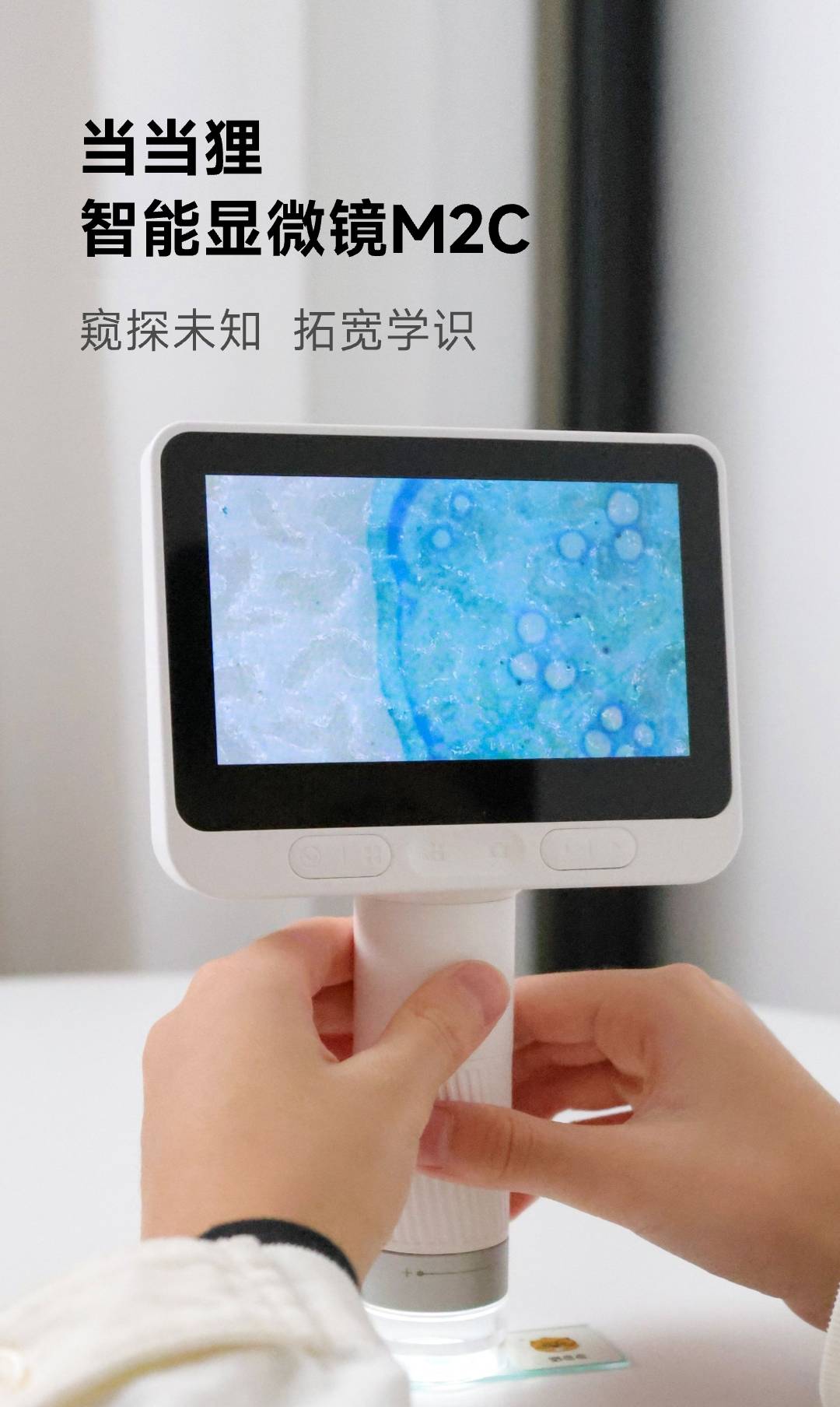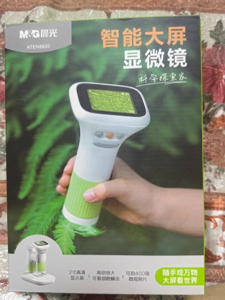 1:仅单体显微镜无底座设计,4英寸屏+8G内存,重量轻便仅1.5颗鸡蛋,孩子拿着玩一天都不会累!