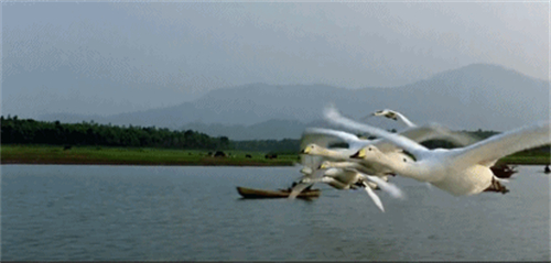 “爸爸妈妈,快看,那群大雁好美!”