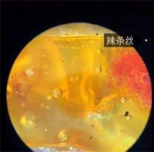 一学生试验室做试验,突发奇想,将我们平时常吃的辣条放到显微镜里调查会是什么姿势呢?所以便找来了辣条,放在显微镜底下进行调查.