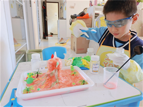 儿子在学校还没涉及太多理科知识,张吉就变着花样带他体验:模拟火山爆发,制作空气火箭,制作创意风筝等。接下来,他打算网购受精的鸡蛋(或鹌鹑蛋),孵化器,保温器,带儿子做无壳孵化实验。从学科上讲,这是生物,从德育讲,又是生命教育。