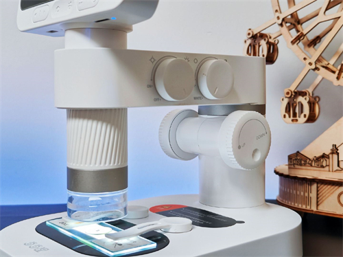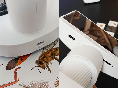 这款智能显微镜继承了当当狸一如既往极致的做工和高颜值,智能显微镜主体和底座是可分离设计,单独拿着显微镜主体适合室外直接观察事物,和底座结合在一起适合室内专业观测。
