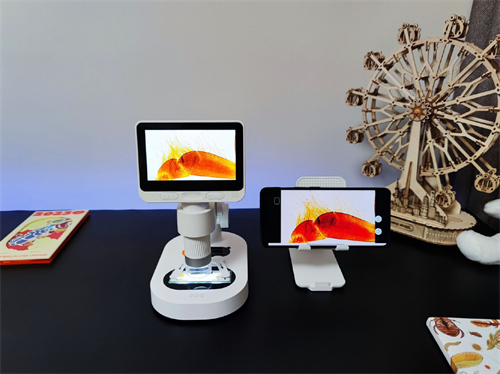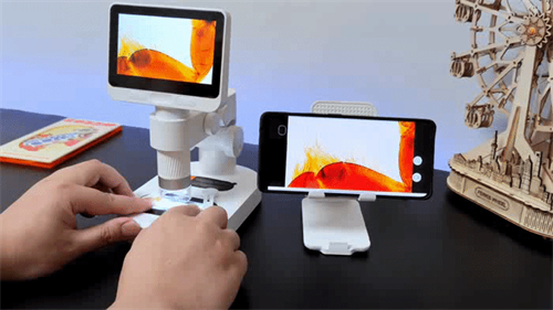不仅可以通过自带屏幕观测,还可以通过WiFi连接手机或者平板观察,这样还能直接投屏到电脑或者投影仪,方便大家一起学习。