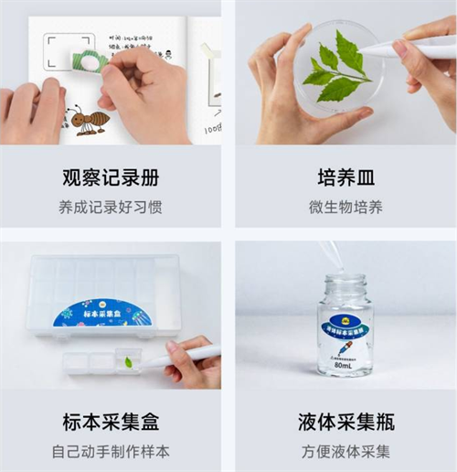 原创微观科普书籍、观察记录册、生物载玻片、标本采集盒、培养皿、采集瓶等,仪式感满满,轻轻松松化身小小科学家。