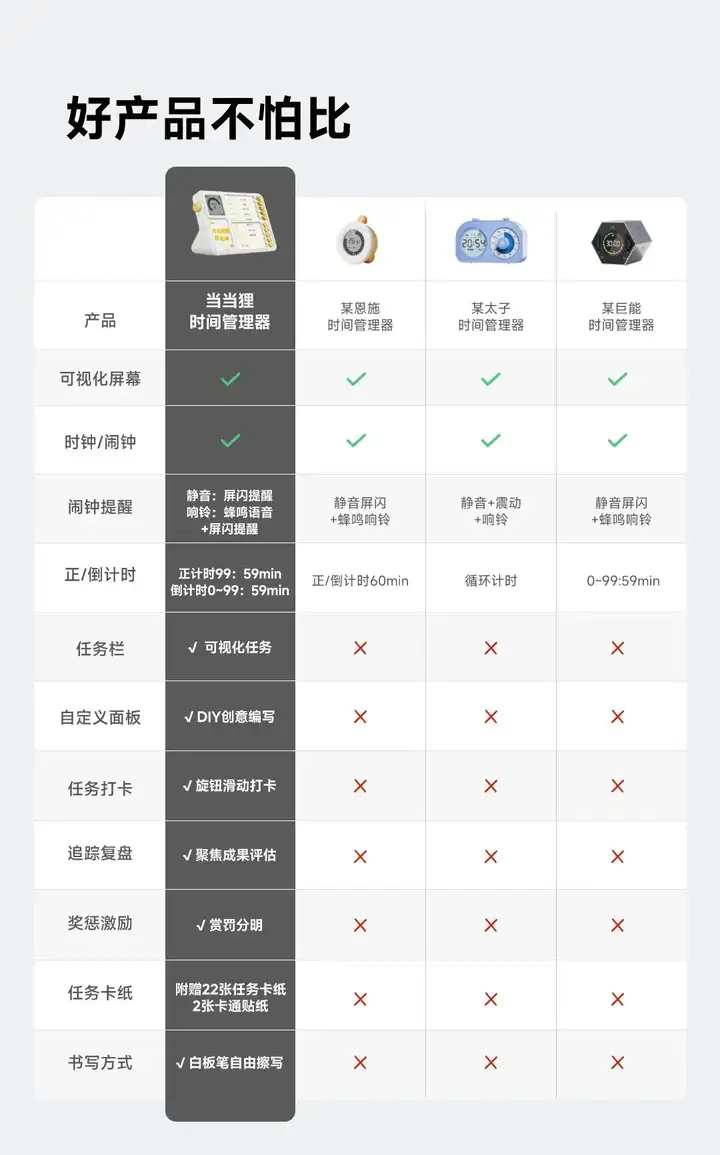 这个时间管理器就是被她们种草的,她们是学校老师要求人手一个的,我试用了半个月,感觉好学校就是不一样,老师会给学生做出规划,甚至要求用一些特别趁手的学习工具,价格也不贵(和我之前买的本子价格差不多 ),哪怕不用也能当个桌面时钟日历闹钟啥的,不亏!