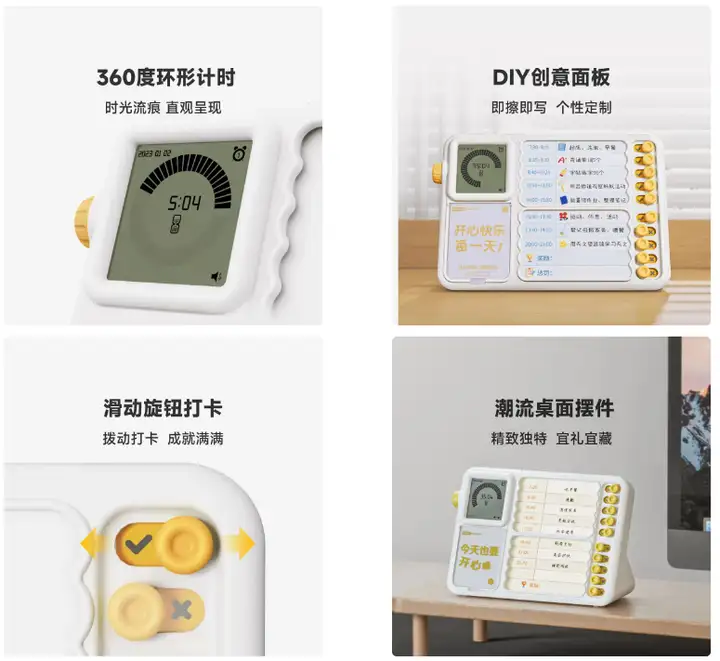 它也集时钟/正计时/倒计时/闹钟等功能为一体,桌面时钟,计时闹钟,辅助提醒,提高效率。