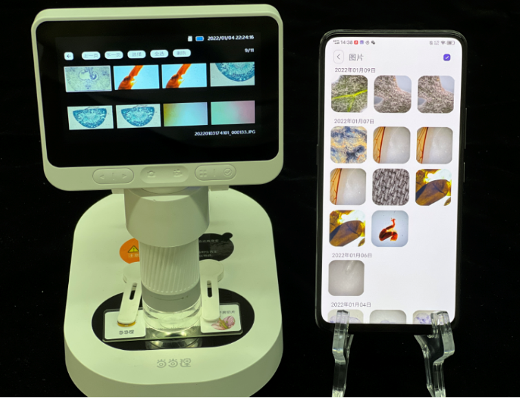 这款当当狸智能显微镜,让孩子和我们,完全不用再盯着单目镜头眯着眼看,而是可以通过显示屏和APP无线连接,直接将整个微观世界呈现出来。